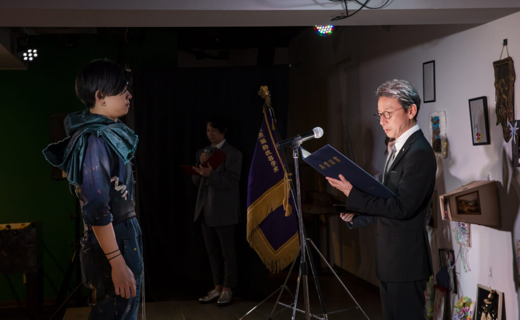 当日は、直前に開催されたファッションショーの熱気が残る中、華やかな雰囲気に包まれながら式が執り行われました。